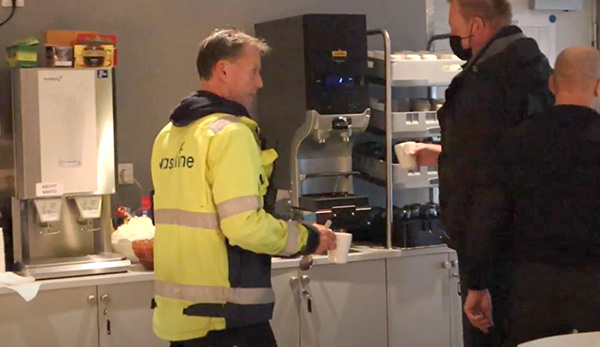 The crew enjoys fresh hot coffee 24/7.