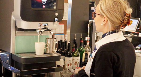 Cafitesse makes real specialty milk coffees for quick service in busy Aurora Botnia bar.